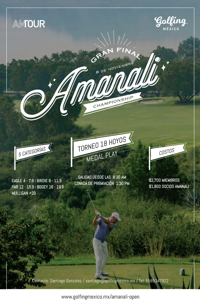 Incluye Green Fee, Premios O'yes y servicios del Tour Amateur Golfing Mexico.